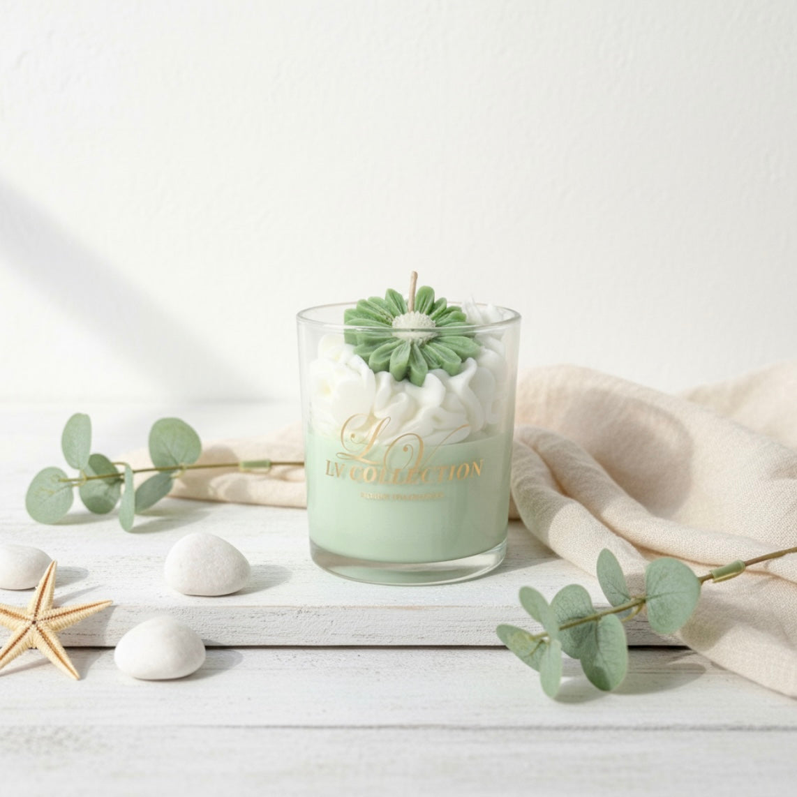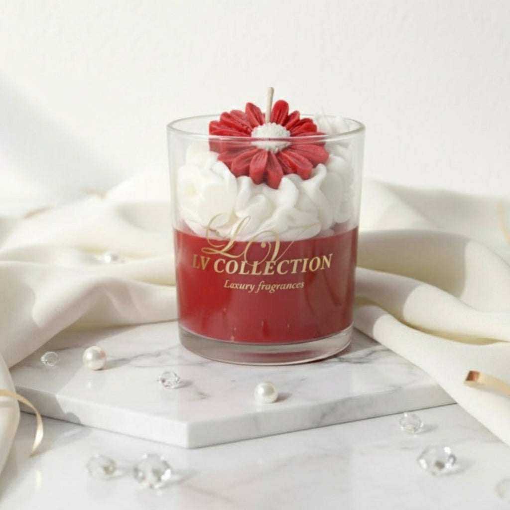 More than just a candle - it's a statement of refined beauty and timeless charm. Hand-piped with luxuriously fluffy soy wax swirls, crowned by a meticulously crafted daisy bloom that captures delicate elegance in every detail. 🌼